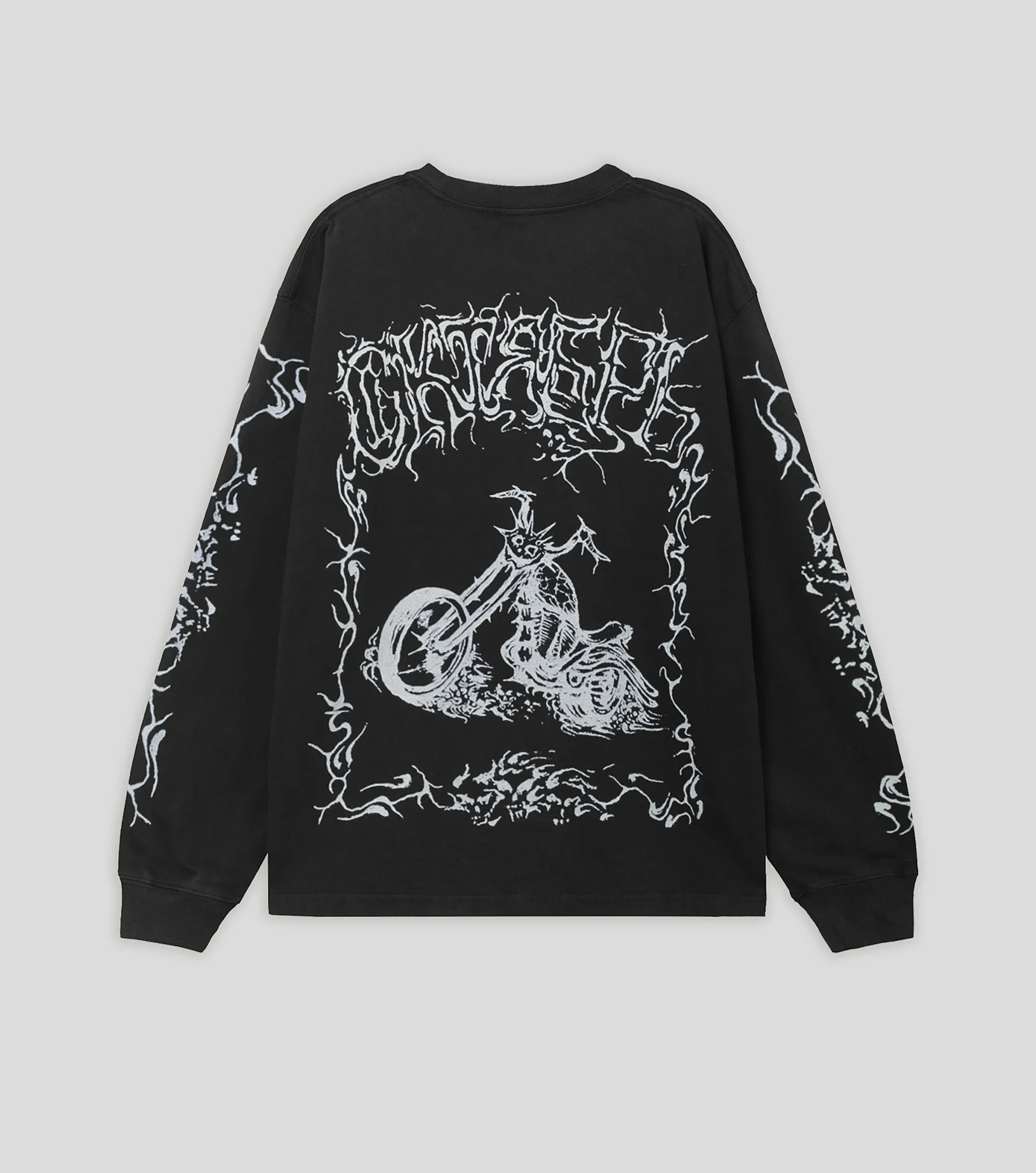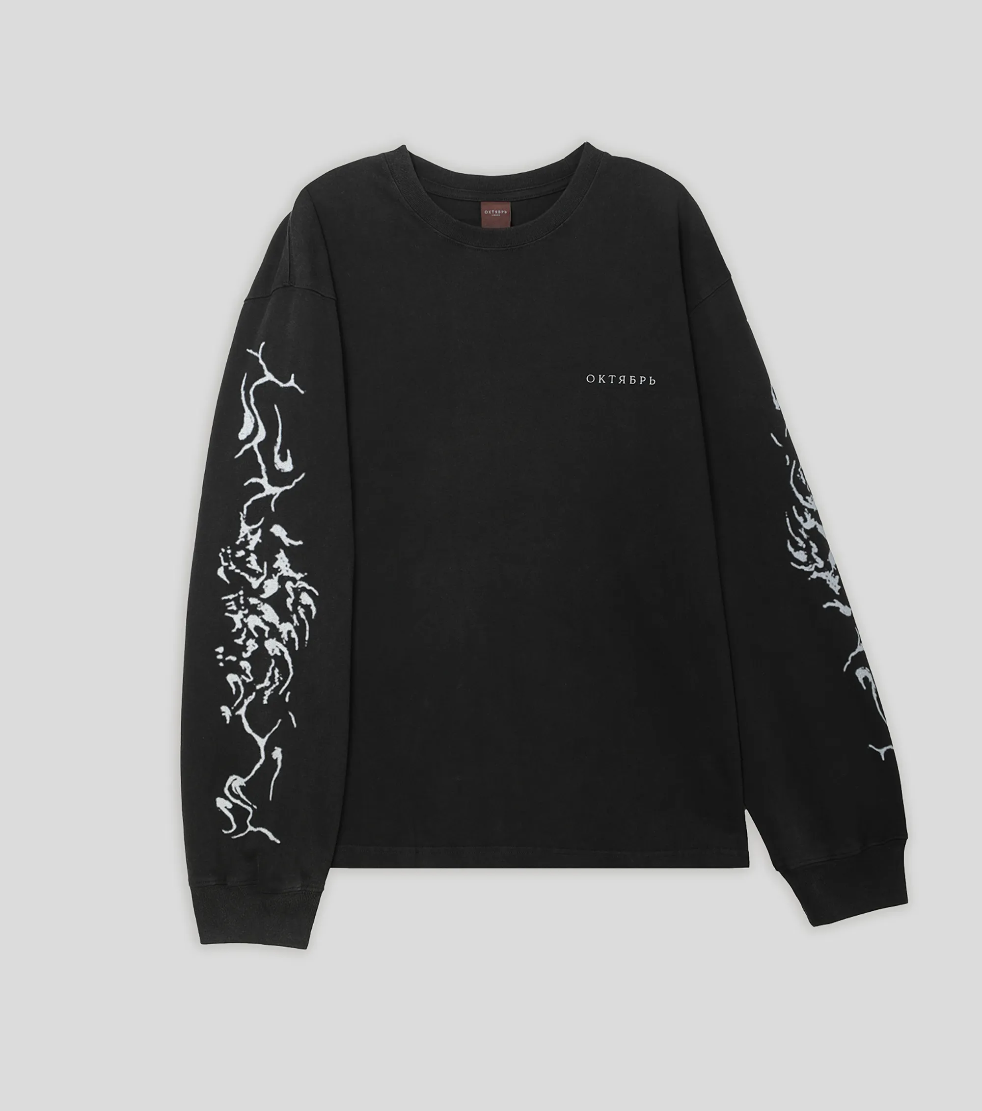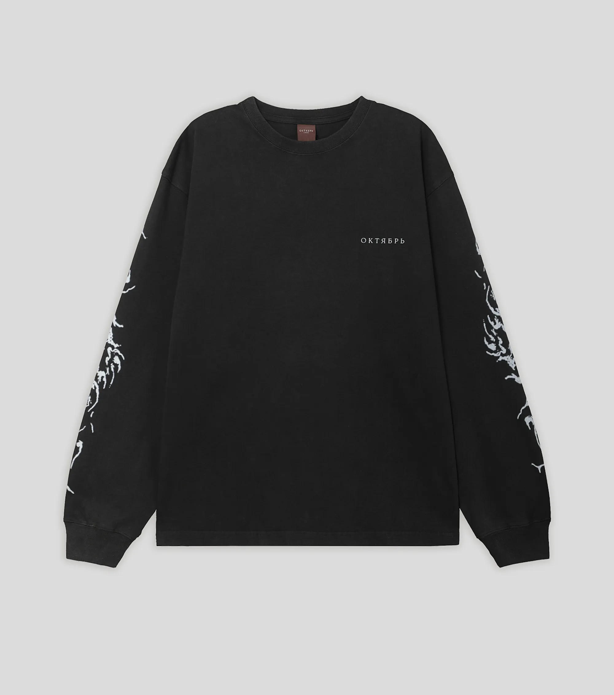 Лонгслив из плотного хлопка 230 г/м². Свободный крой, эластичный ворот. Обработка Hard Washing для дополнительной мягкости и неоднородного цвета. Фирменный принт на груди. Авторские принты на спине и рукавах.