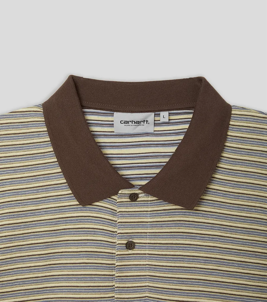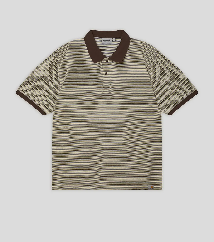 Рубашка поло Carhartt WIP выполнена из фактурного хлопкового трикотажа с полосатым узором по всей поверхности.
