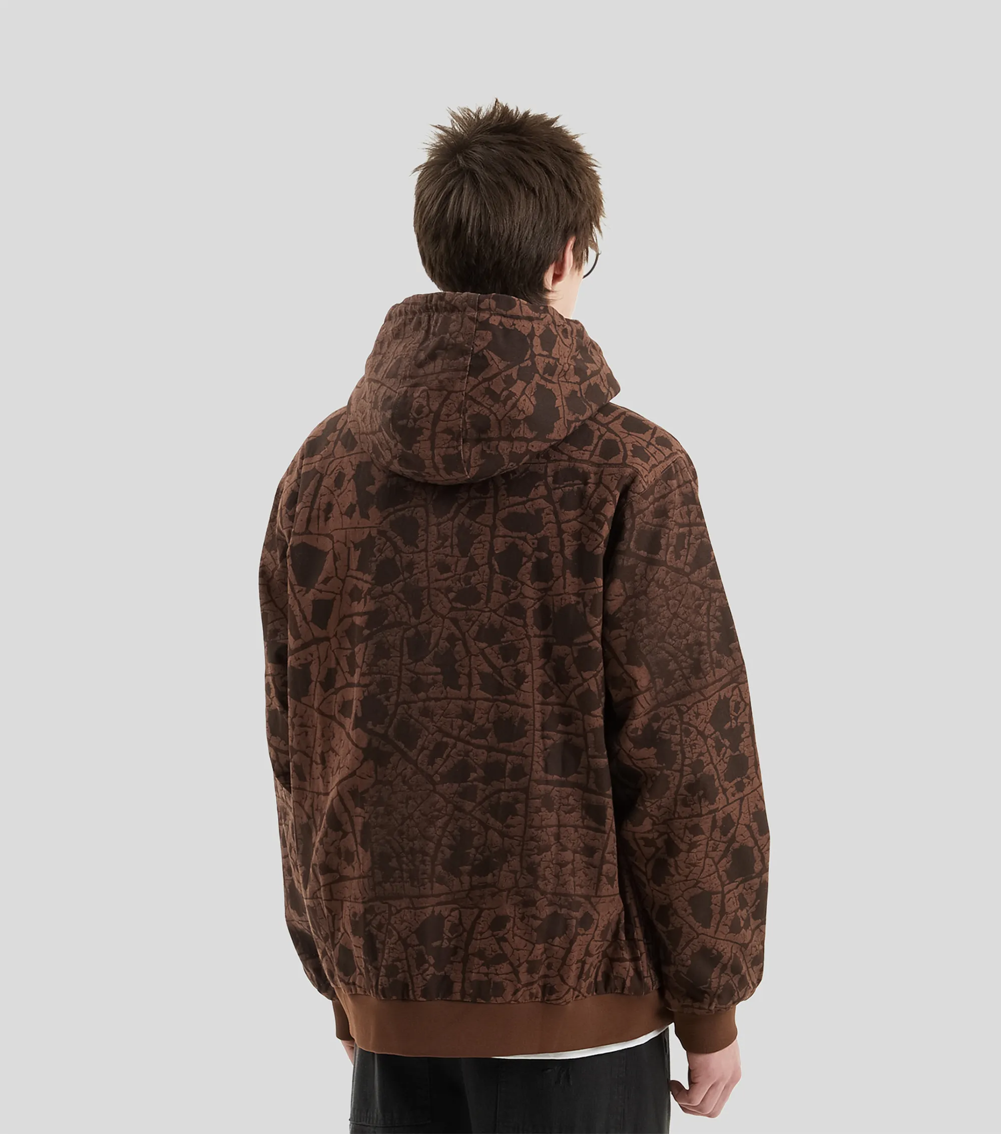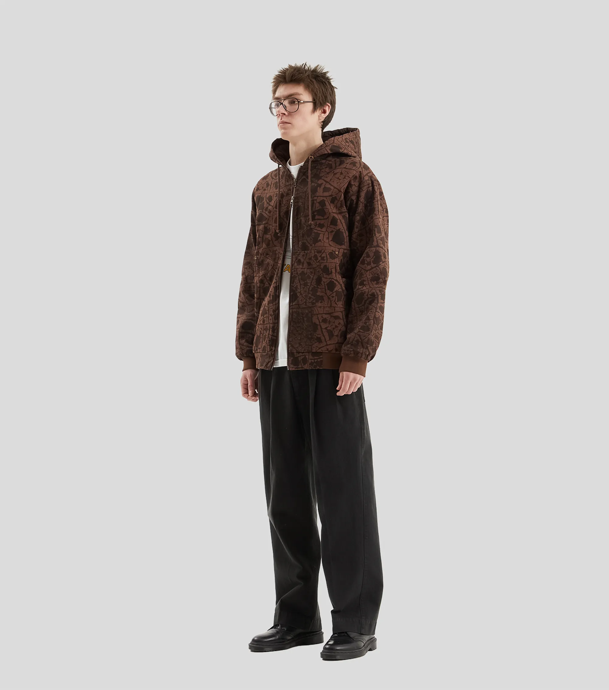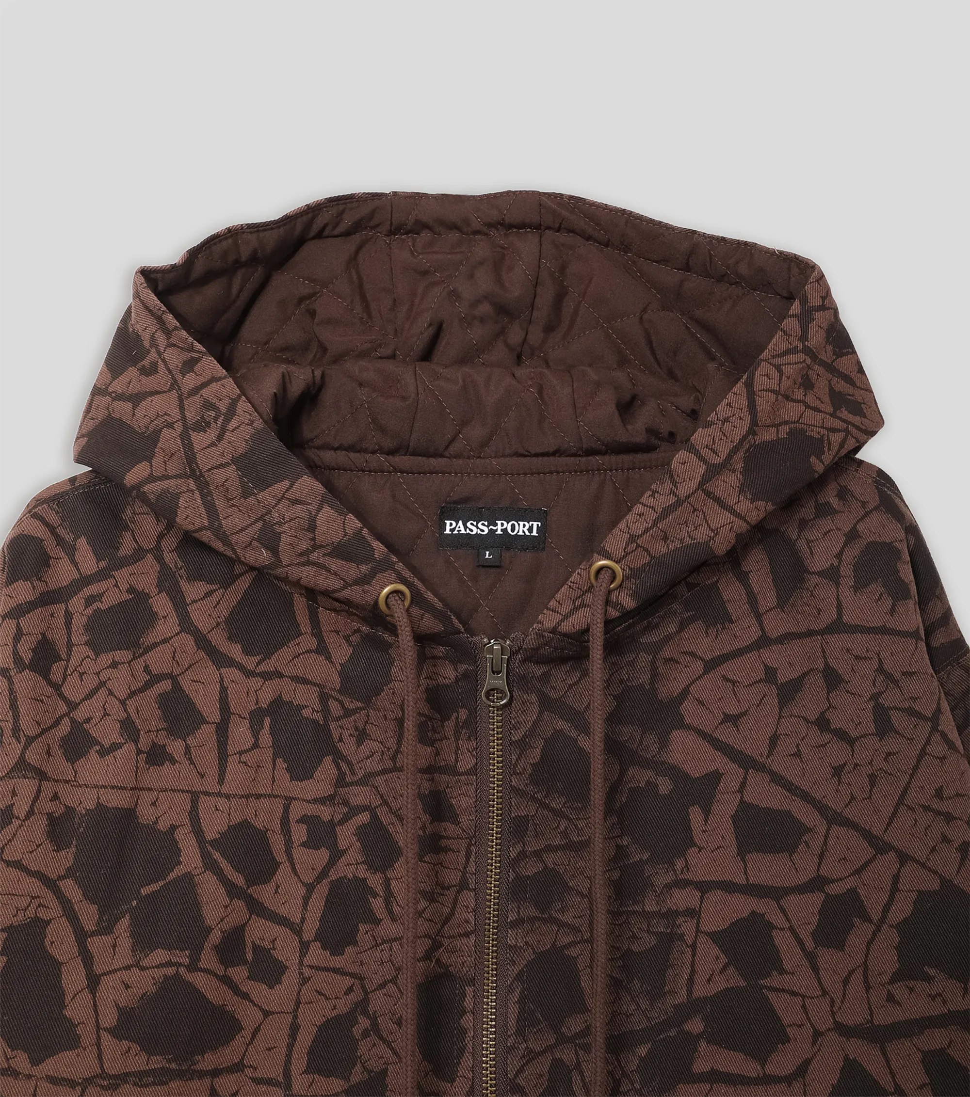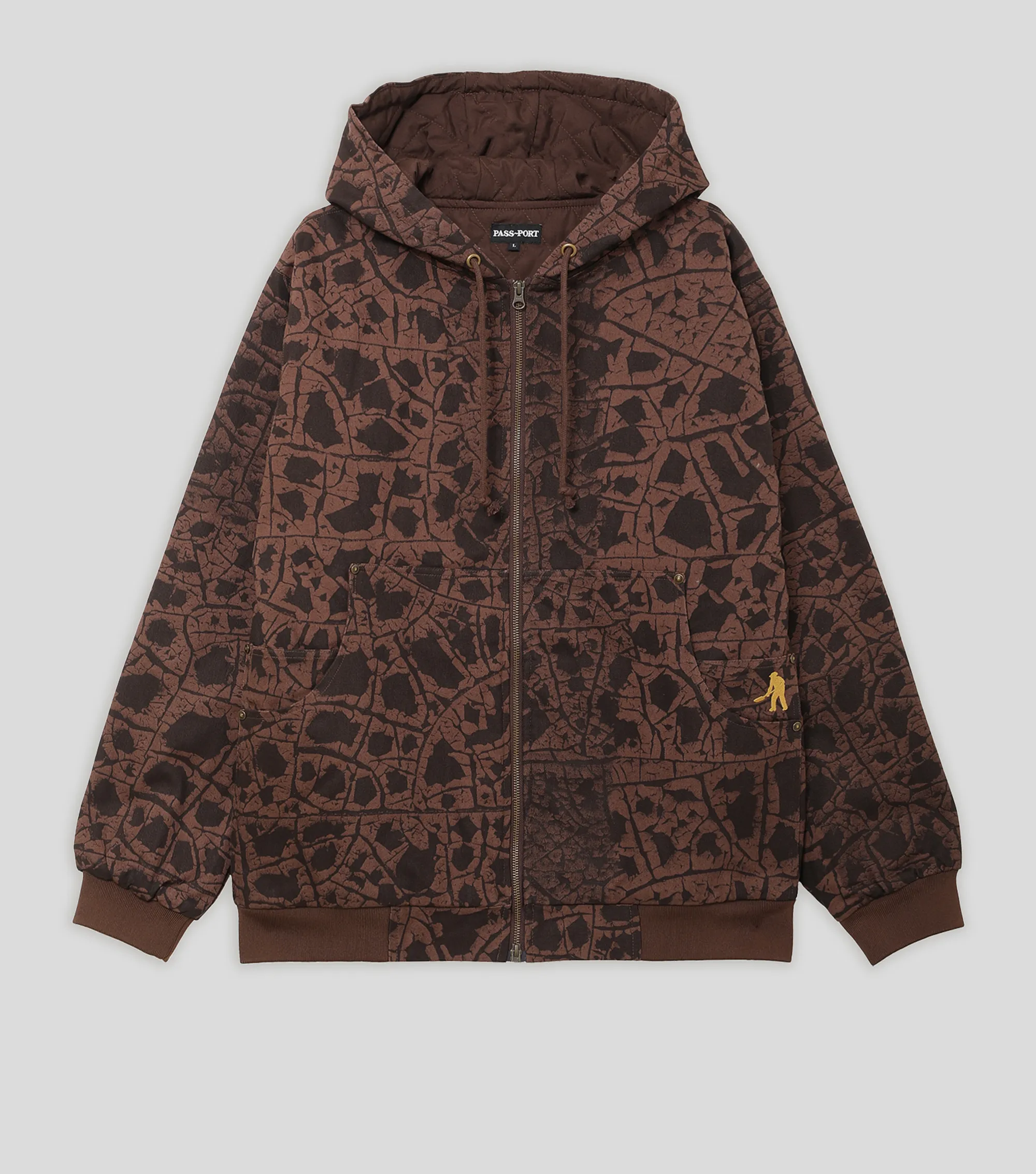 Хлопковое худи на молнии Pass~Port с верхом из твила на стеганой подкладке. Сплошной принт с логотипом бренда и металлические заклепки.